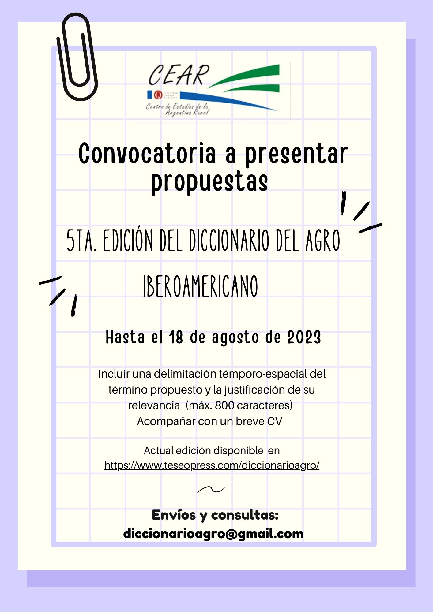 Quienes tengan interés en participar como expositores/as deben remitir hasta el viernes 24 de mayo una propuesta de ponencia con el siguiente contenido: