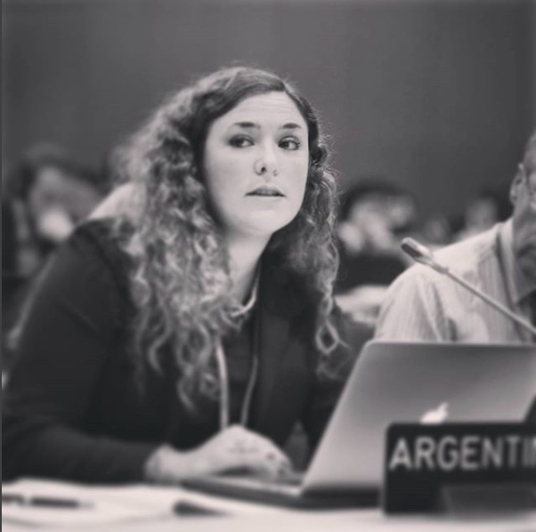 Negociadora de cambio climático por la Argentina desde 2013. Co-Presidenta del Comité de Adaptación de la Convención Marco de Naciones unidas sobre Cambio Climático (CMNUCC). Integrante de la Fuerza Especial de Desplazamientos del Comité de Pérdidas y Daños de la CMNUCC. Co-Facilitadora de las negociaciones del Fondo de Adaptación en el Grupo de Trabajo Ad Hoc del Acuerdo de París (APA). Coordinadora del G77 más China en temas de adaptación.