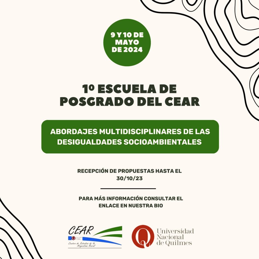 El Centro de Estudios de la Argentina Rural (CEAR), el Grupo de Trabajo de Desigualdades (integrado por el CEAR-UNQ, el IPHCS-UNCO-CONICET y el IEH-CONICET) y el Doctorado en Estudios Territoriales (UNQ) se complacen en anunciar la realización de la primera Escuela de Posgrado del CEAR.